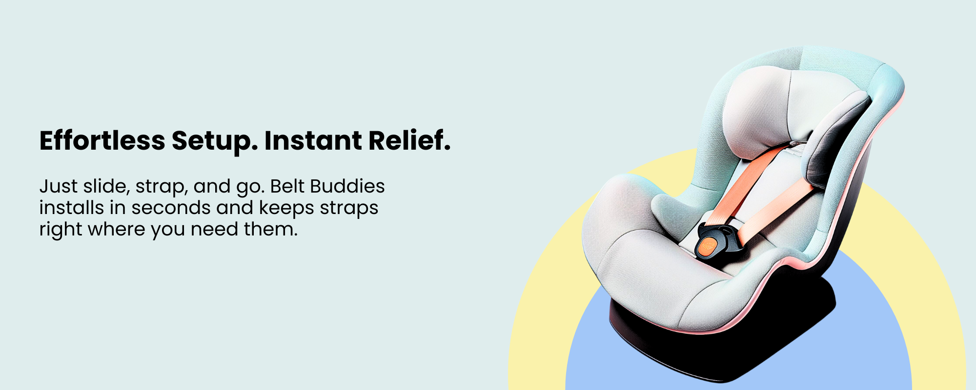 I used to dread strapping my baby in every morning. Belt Buddies keeps the straps out of the way and saves me time every single day!